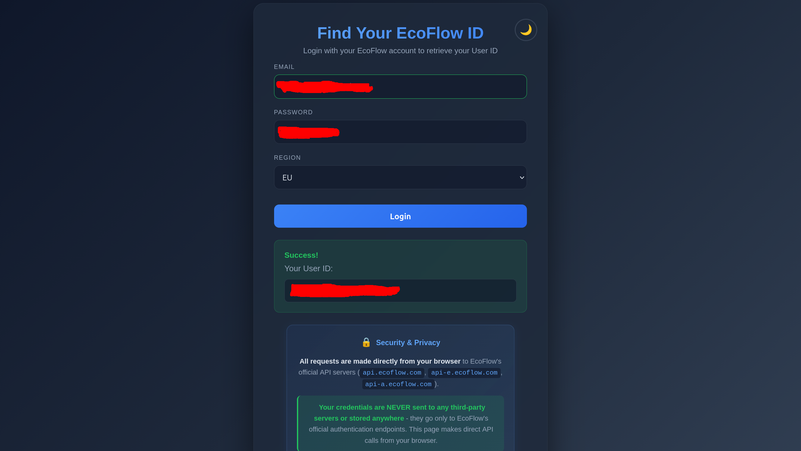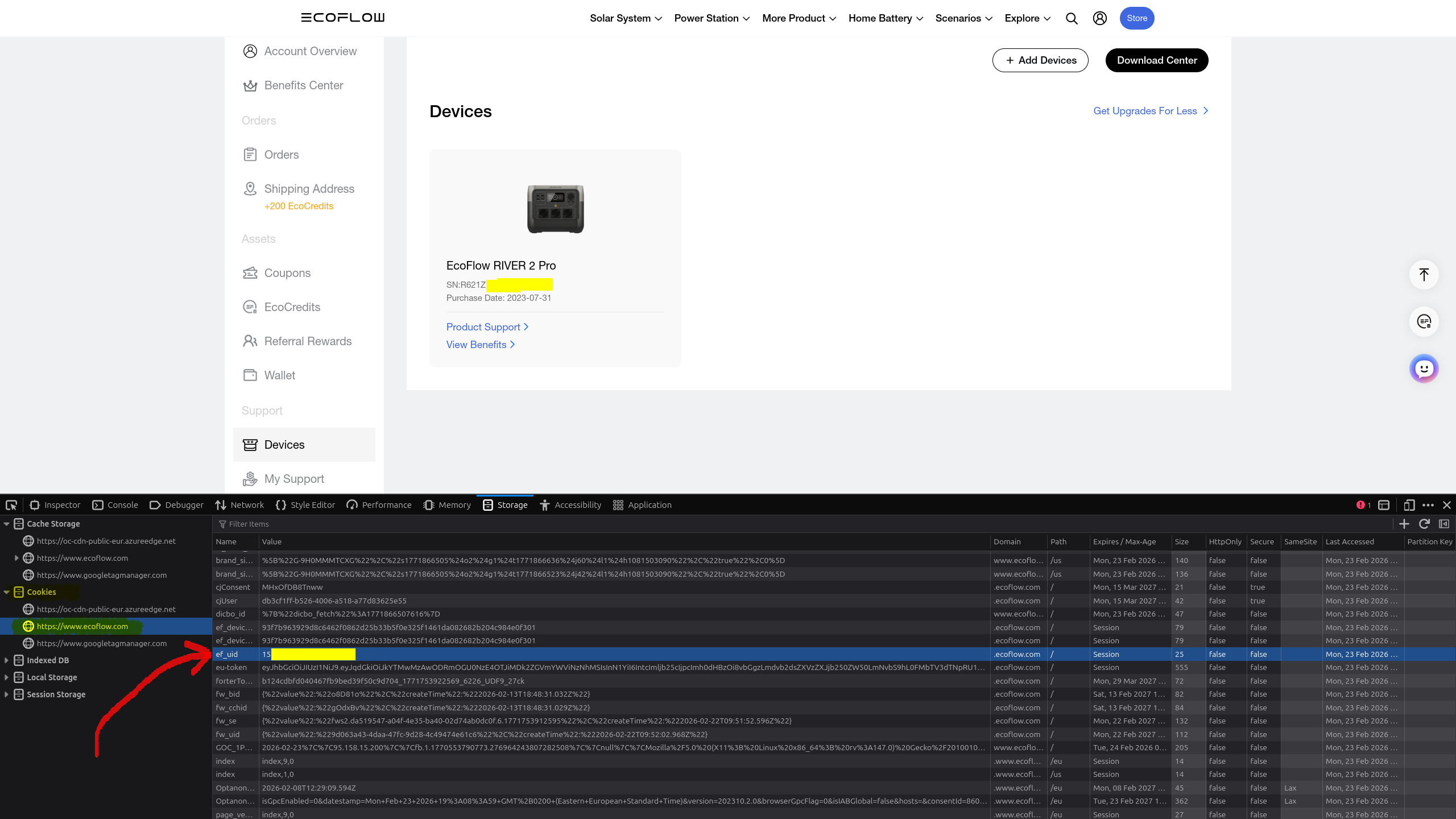 Перша — невідомий протокол керування під капотом. Навіть, якщо у вас є пристрій з Bluetooth (телефон чи ноутбук), яким можна було б теоретично підключитися до зарядної станції, це ще не означає, що це просто зробити. Контора не надає жодних інструкцій щодо користування цим інтерфейсом. Хвала опен-сорсу та ентузіастам, яким вдалося зареверс-інженерити цей спосіб комунікації в цьому репозиторії. Якщо коротко, то там під капотом виявились зашифровані Protobuf повідомлення (дуже далекий родич JSON — щоб не ускладнювати). Для розшифрування виявилось достатньо мати userId, який можна витягнути з вашого EcoFlow акаунту. Як його дістати:
