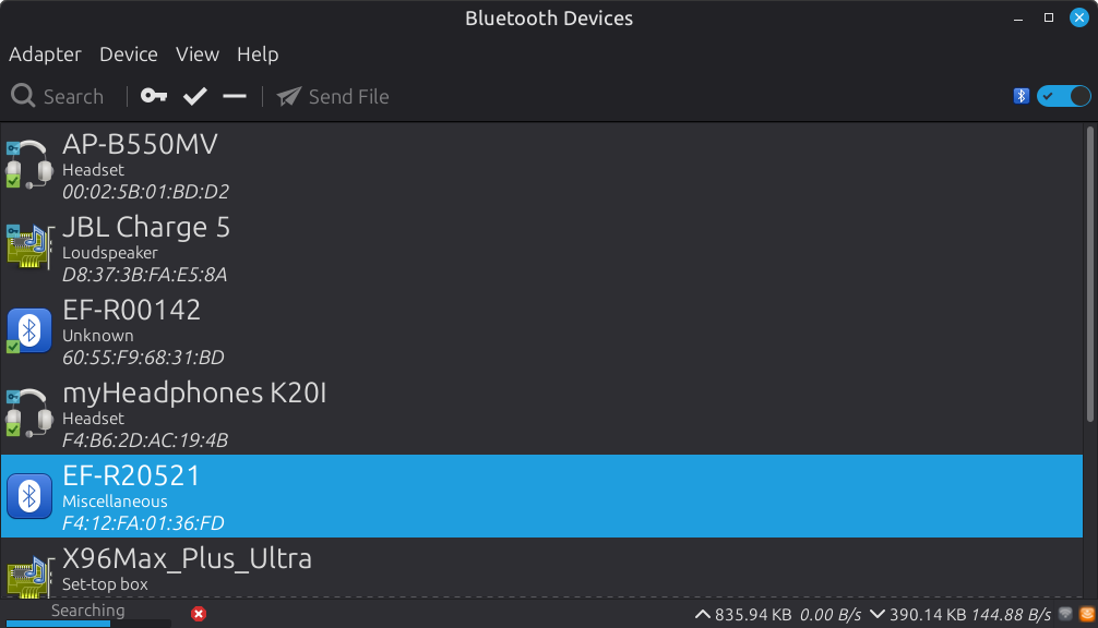 Також знадобиться MAC адреса Bluetooth модуля Вашої станції. Проскануйте Bluetooth пристрої поряд і шукайте ті, назви який починаються з EF (тобто EcoFlow). Деякі бренди смартфонів показують мак адреси пристроїв поряд, але якщо ні, то скористайтесь будь-яким Bluetooth сканером з Google Play Store. Нажаль пристрої Apple показують лише замасковані UUID замість реальних мак адрес, тому скористайтесь Андроїдом чи ноутбуком на Windows/Linux.