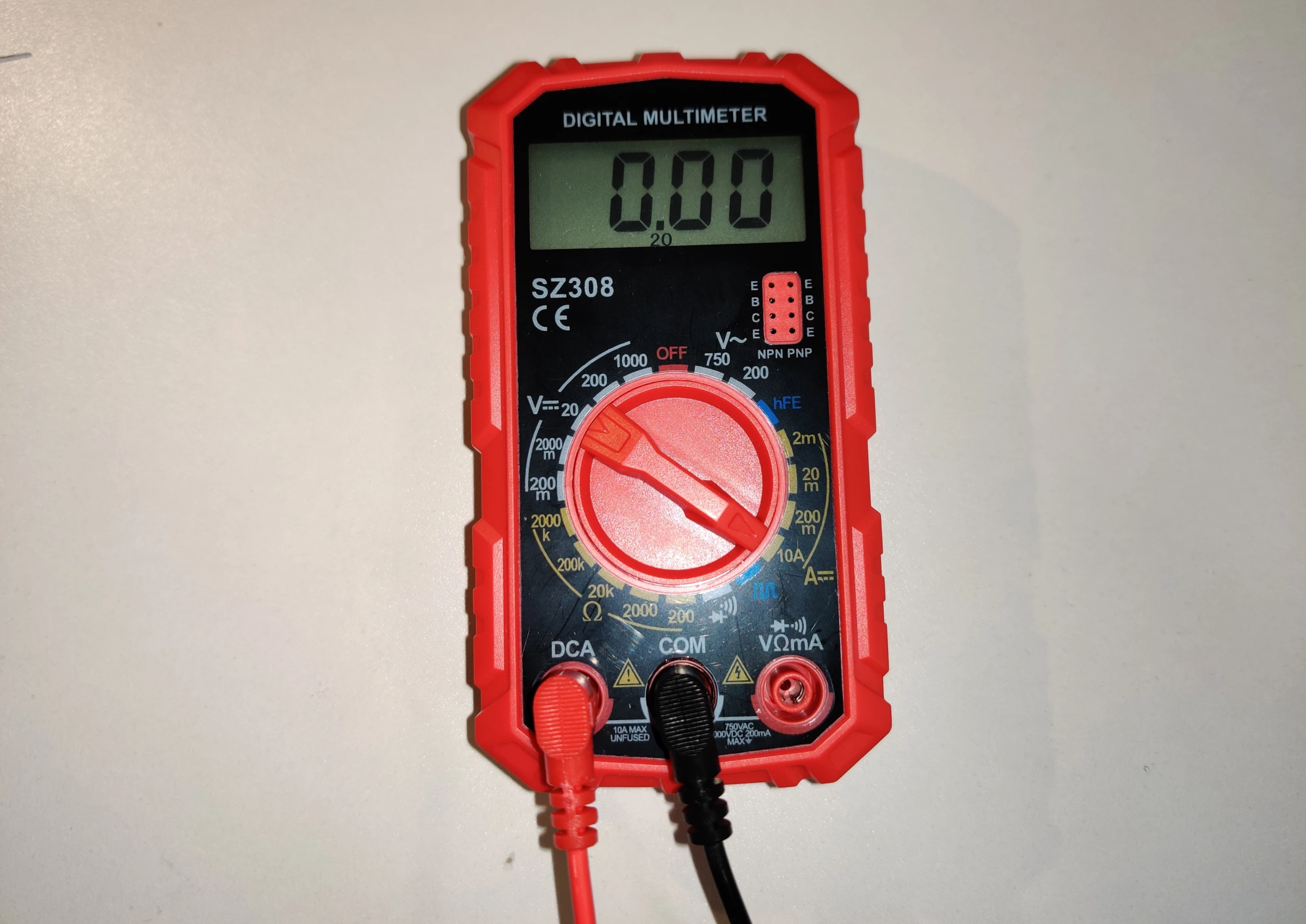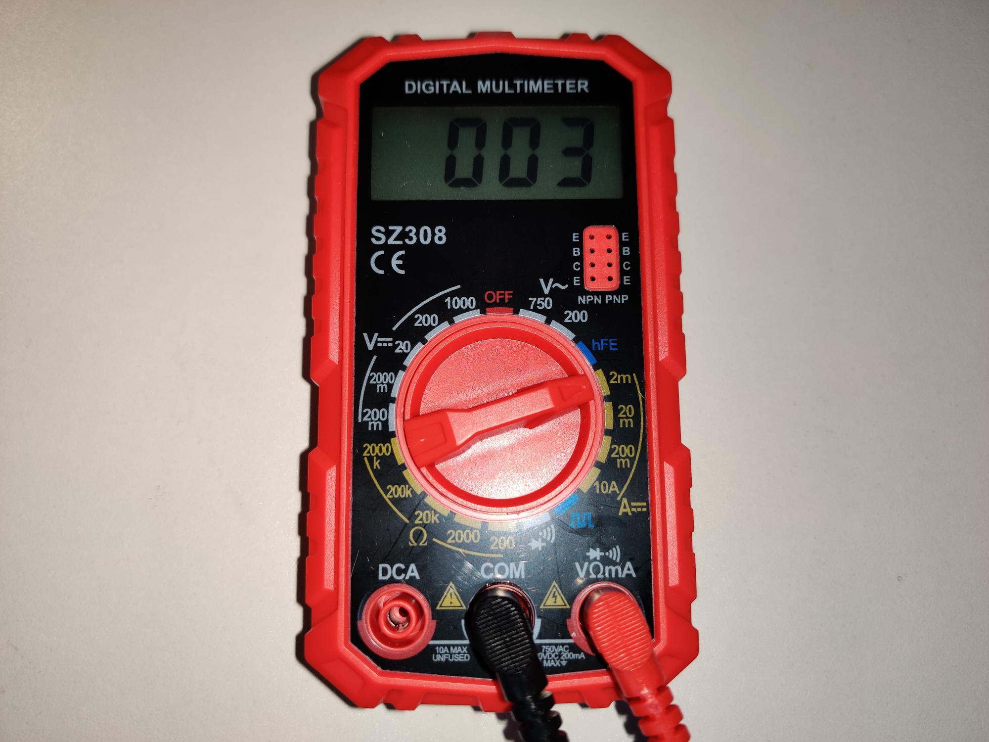 З'єднайте послідовно: джерело живлення 1В (завчасно виставте 1В), амперметр в режимі 10А (як на фото) та сам запобіжник. Починайте потрохи збільшувати напругу живлення на джерелі, поглядаючи то на амперметр, то на провідник всередині запобіжника. На певній напрузі провідник всередині запобіжника розжариться до помітного світіння і зрештою перегорить, якщо будете збільшувати напругу. Роз'єднайте коло і перевірте працездатність запобіжника мультиметром в режимі "продзвонки"