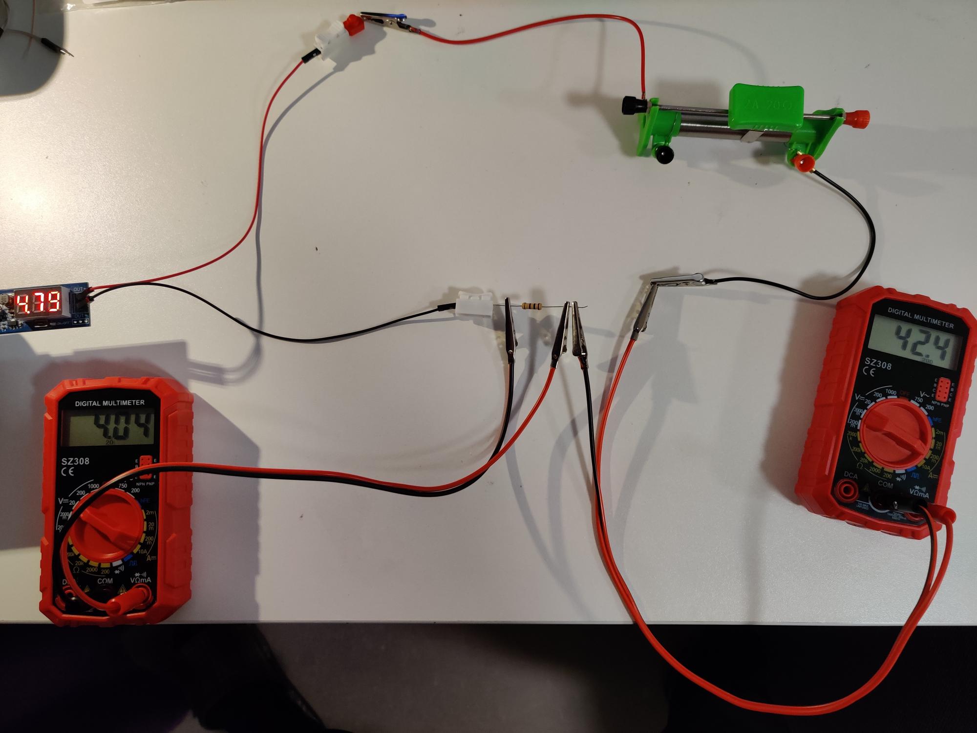 Підключіть до джерела живлення моторчик через 2 паралельні резистори по 100 Ом, після чого переведіть джерело живлення в положення ON: