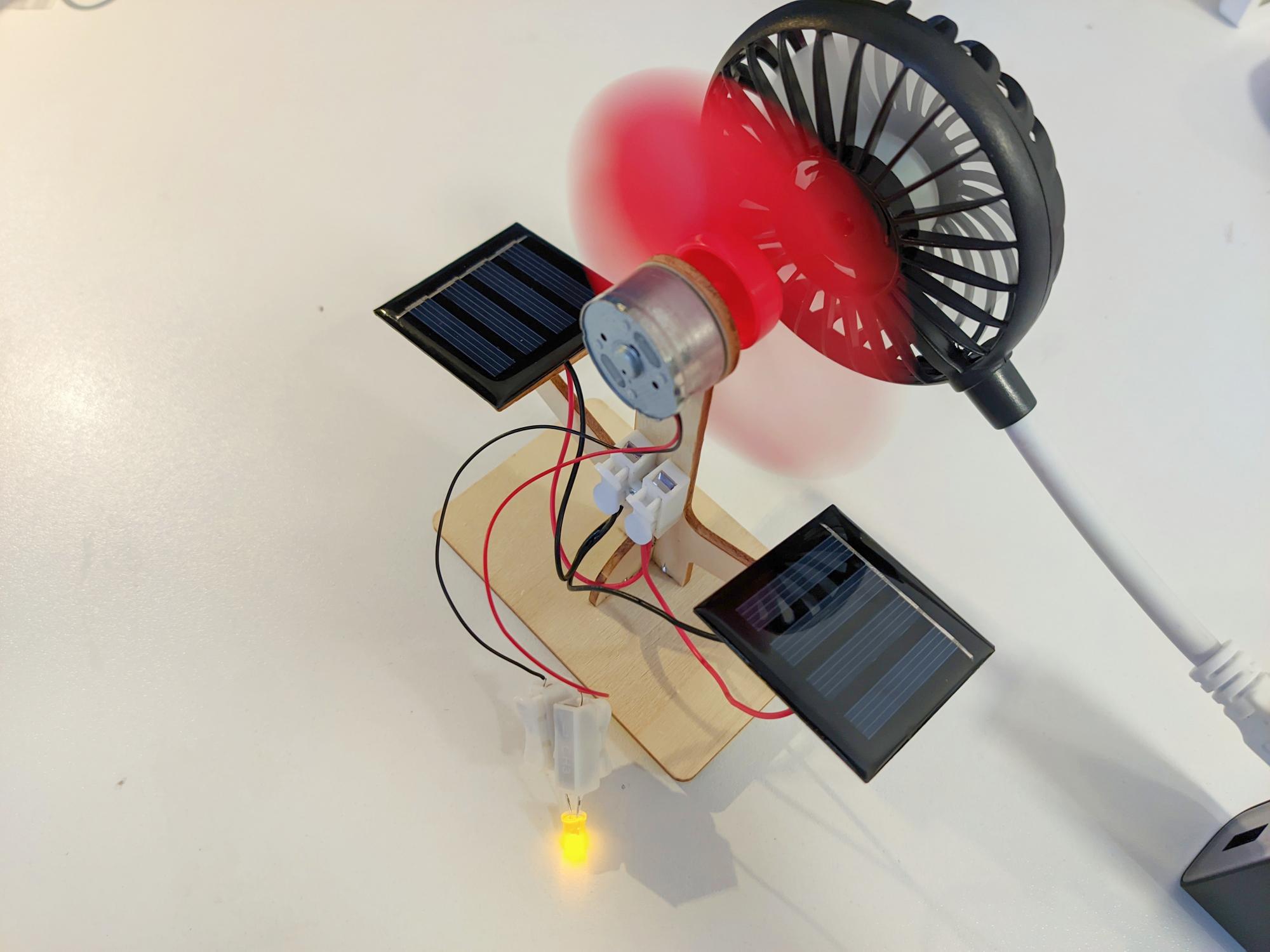Просто знову покажіть Експеримент 1 з вітрогенератором з Фізика 8 клас.